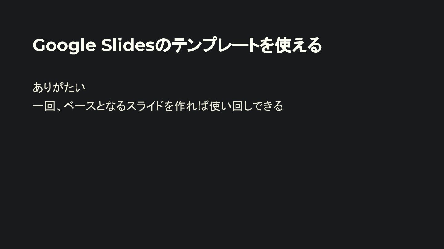 Google Slidesのテンプレートを使える ありがたい 一回、ベースとなるスライドを作れば使い回しできる