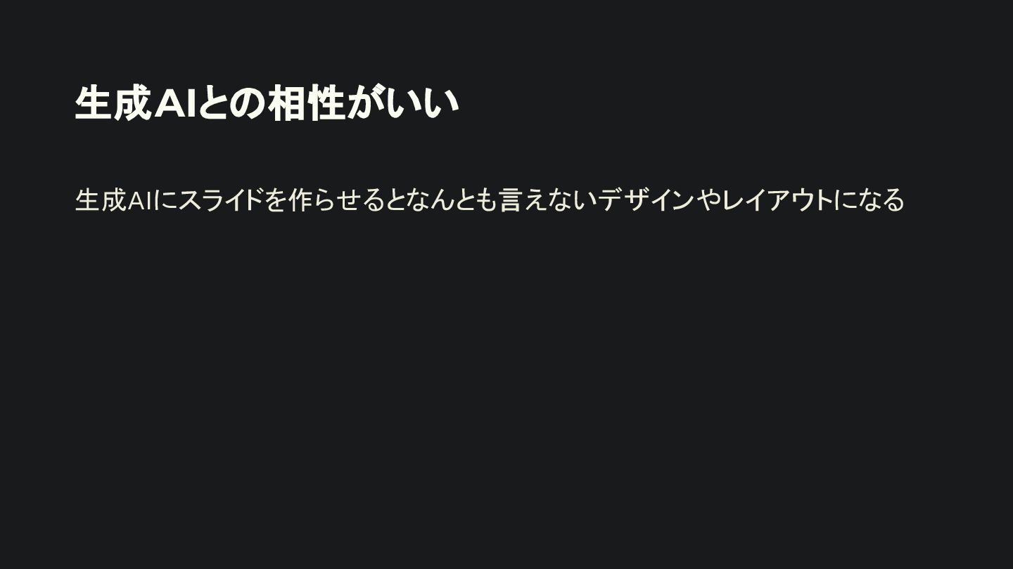 生成AIとの相性がいい 生成AIにスライドを作らせるとなんとも言えないデザインやレイアウトになる