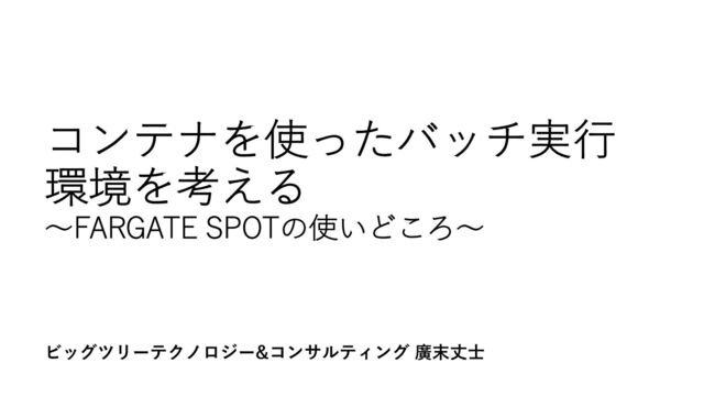 コンテナを使ったバッチ実⾏ 環境を考える 〜FARGATE SPOTの使いどころ〜 ビッグツリーテクノロジー&コンサルティング 廣末丈⼠