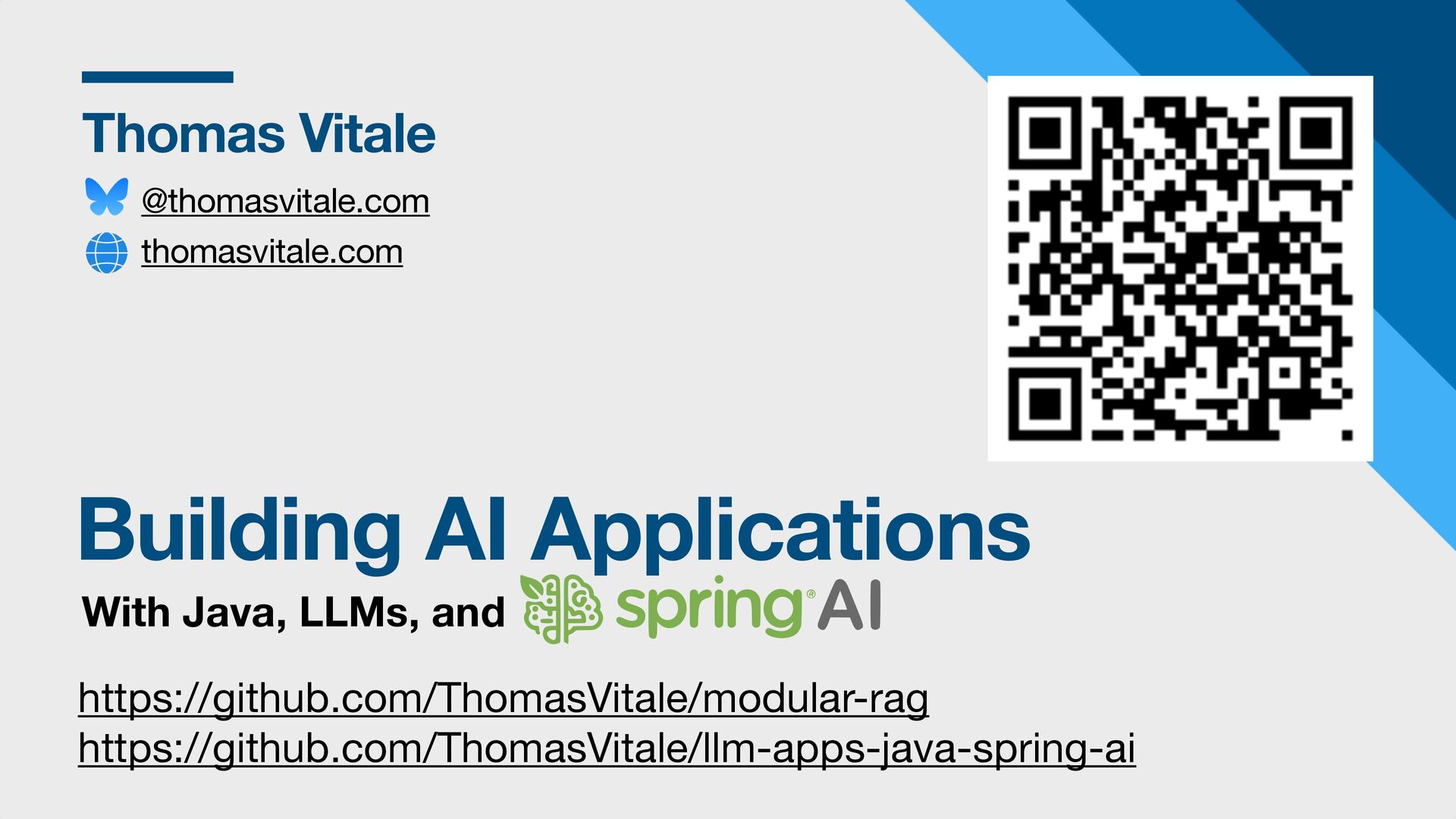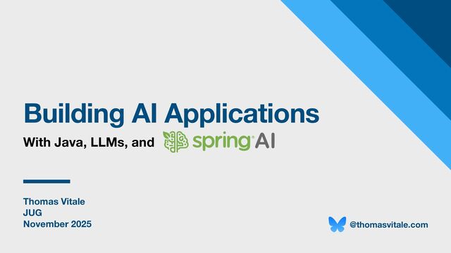 This presentation will guide you through building Java applications with AI capabilities, leveraging Generative AI and Large Language Models (LLMs) using Spring AI. You will learn how to: