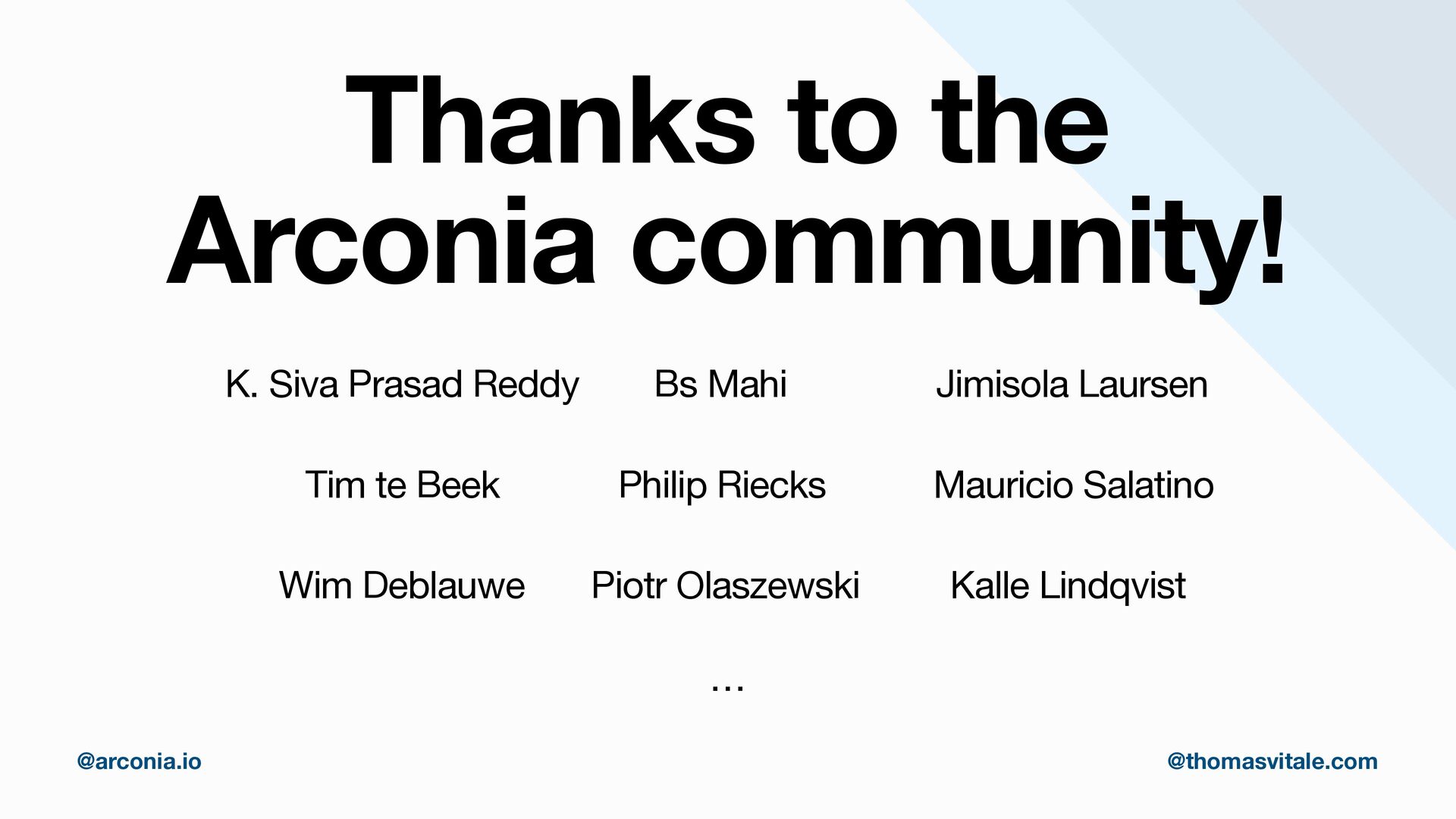 9. @thomasvitale.com @arconia.io Thanks to the Arconia community! K. Siva Prasad