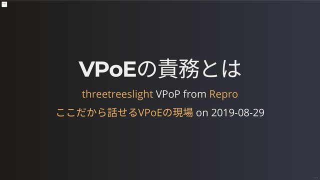 VPoE の責務とは VPoP from on 2019-08-29 threetreeslight Repro ここだから話せるVPoE の現場