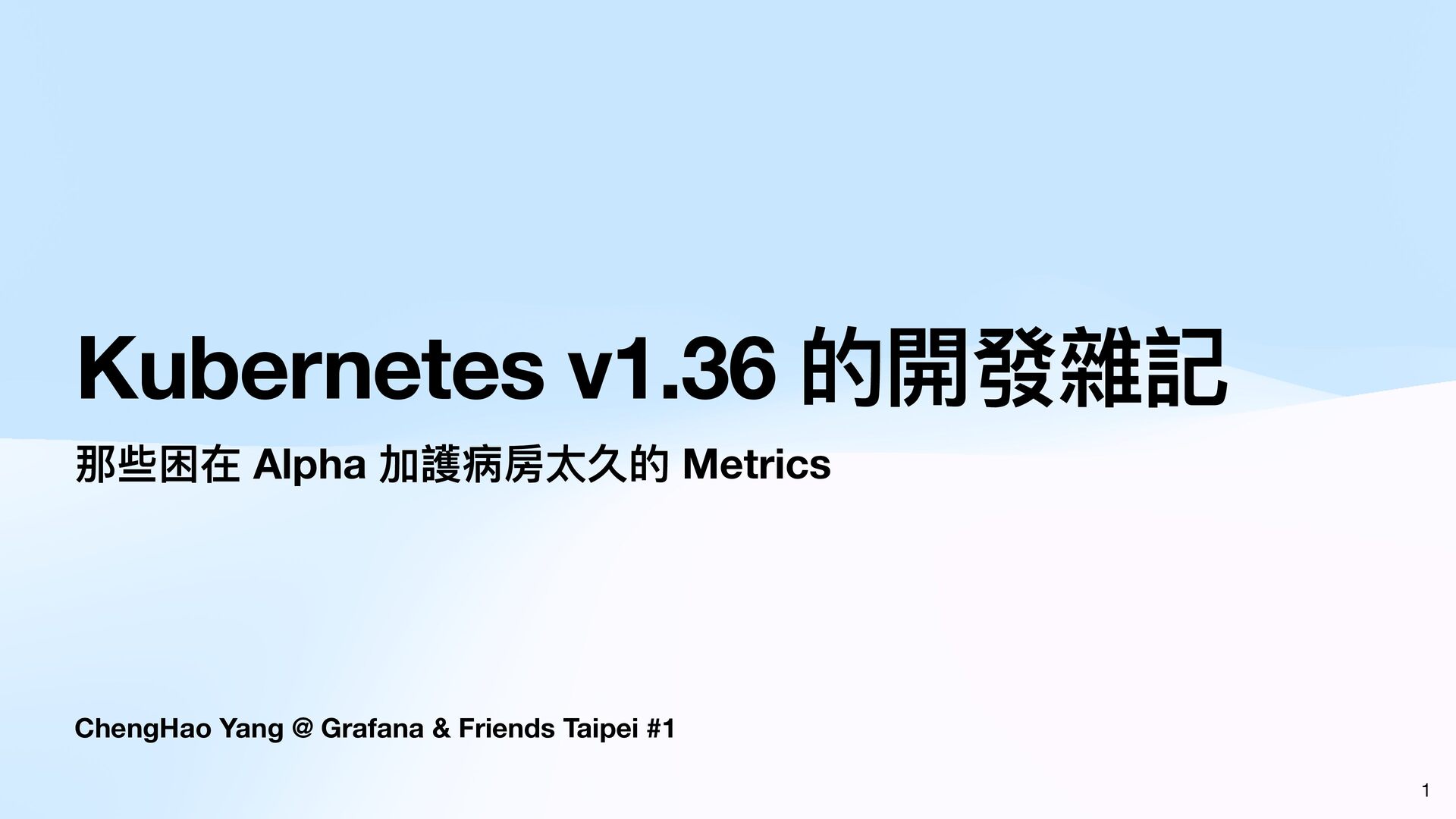 20260313 - Grafana & Friends Taipei #1 - Kubernetes v1.36 的開發雜記:那些困在 Alpha 加護病房太久的 Metrics