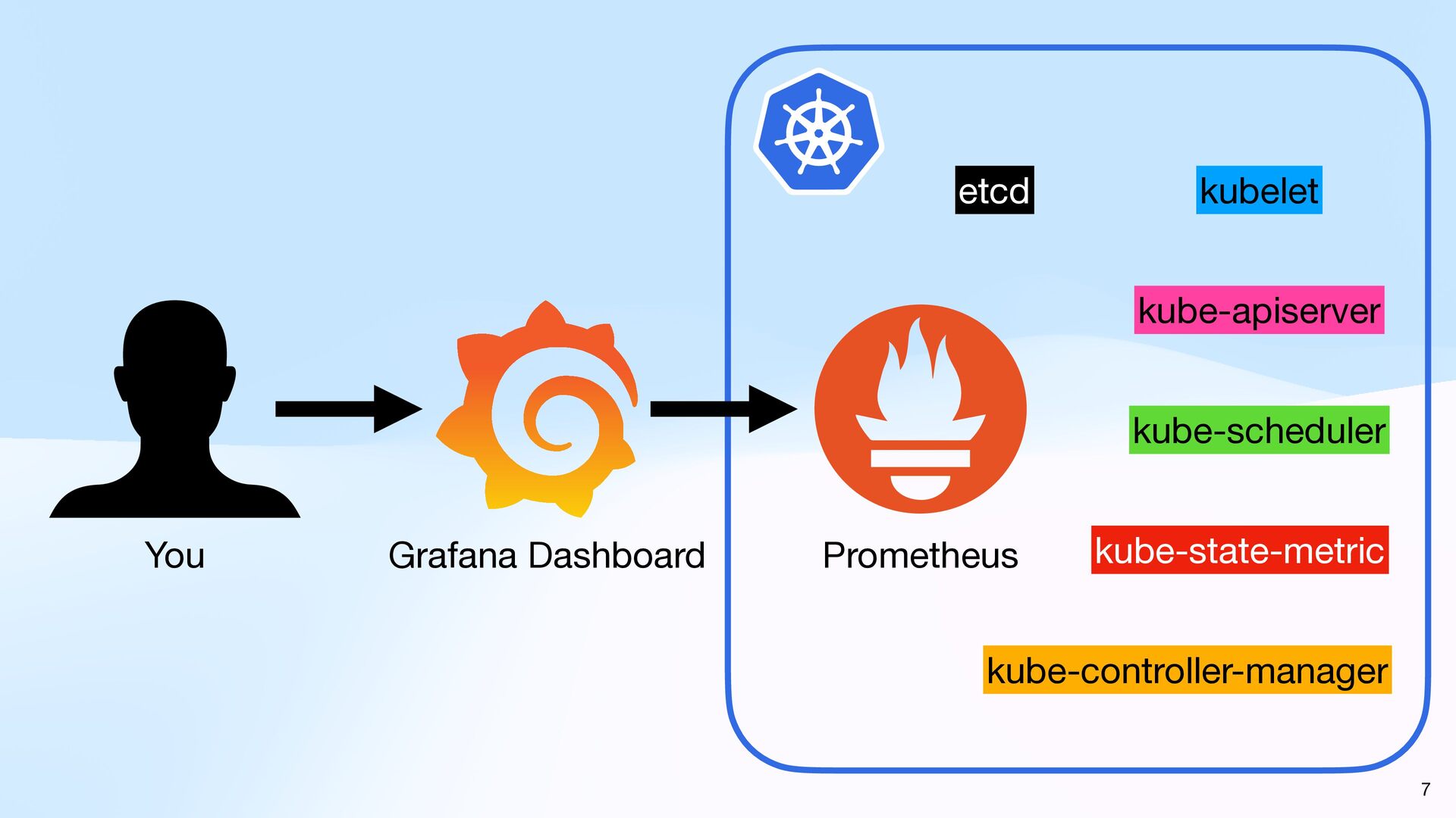 7 kubelet kube-controller-manager kube-apiserver kube-scheduler You Grafana Dashboard Prometheus etcd