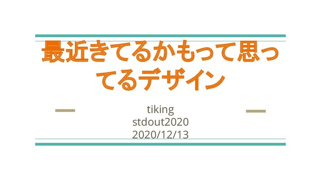 最近きてるかもって思っ てるデザイン tiking stdout2020 2020/12/13