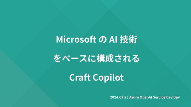 https://azureai.connpass.com/event/319491/ でお話した Craft Copilot での Microsoft の AI 技術 をベースに構成される アーキテクチャについて
