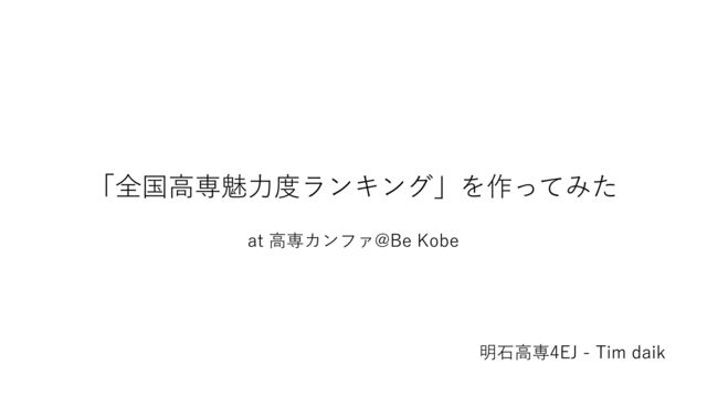 「全国高専魅力度ランキング」を作ってみた at 高専カンファ@Be Kobe 明石高専4EJ - Tim daik