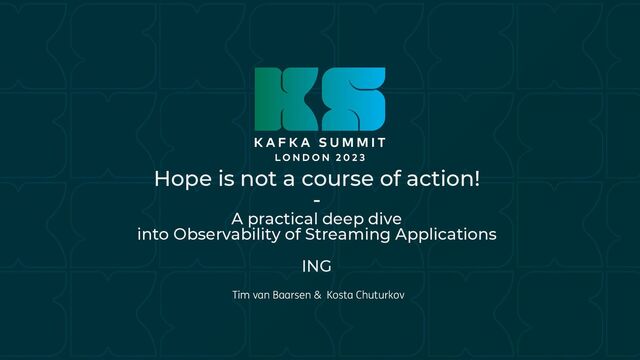deep dive into Observability of Streaming Applications ING Tim van Baarsen & Kosta Chuturkov