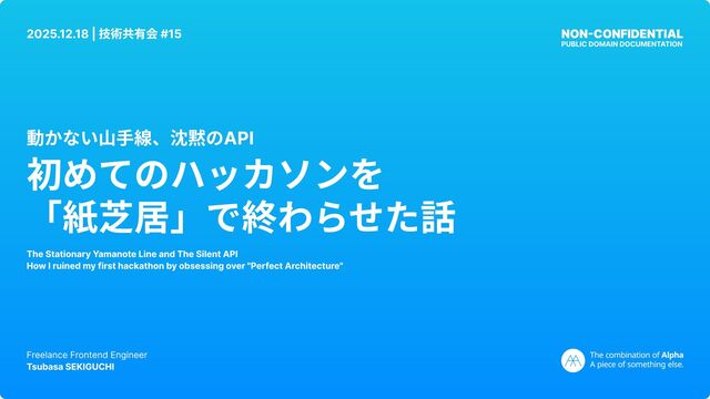 NON-CONFIDENTIAL PUBLIC DOMAIN DOCUMENTATION Freelance Frontend Engineer Tsubasa SEKIGUCHI 動かない山手線、沈黙のAPI
