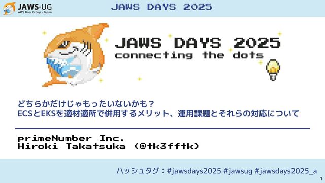 ◦ インプレースアップデートに対応 ◦ k8s主要コンポーネントやAWSサービスとの連携のためのコンポーネントは EKSアドオンとして提供され、管理が容易 • 複数のデプロイ先オプション ◦ Amazon EC2, AWS Fargate, Hybrid Node, EKS Anywhere, Auto Mode… ※ EKSのロゴは ですがECS との差分がKだけなのでk8sのロゴ を使います [おさらい] Amazon Elastic Kubernetes Service (EKS) ハッシュタグ:#jawsdays2025 #jawsug #jawsdays2025_a 7