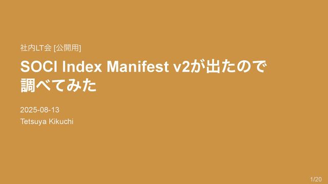 SOCI Index Manifest v2 が出たので 調べてみた 2025-08-13 Tetsuya Kikuchi 社内LT
