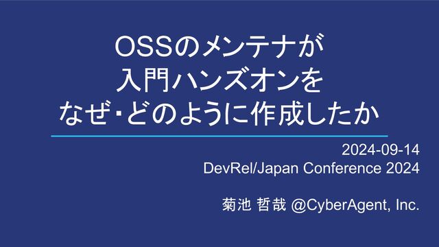 2024-09-14 DevRel/Japan CONFERENCE 2024での登壇資料です。 https://devrel.tokyo/japan-2024/sessions/e87fbaa0-dff1-4bfb-b29f-6faf618abf56/