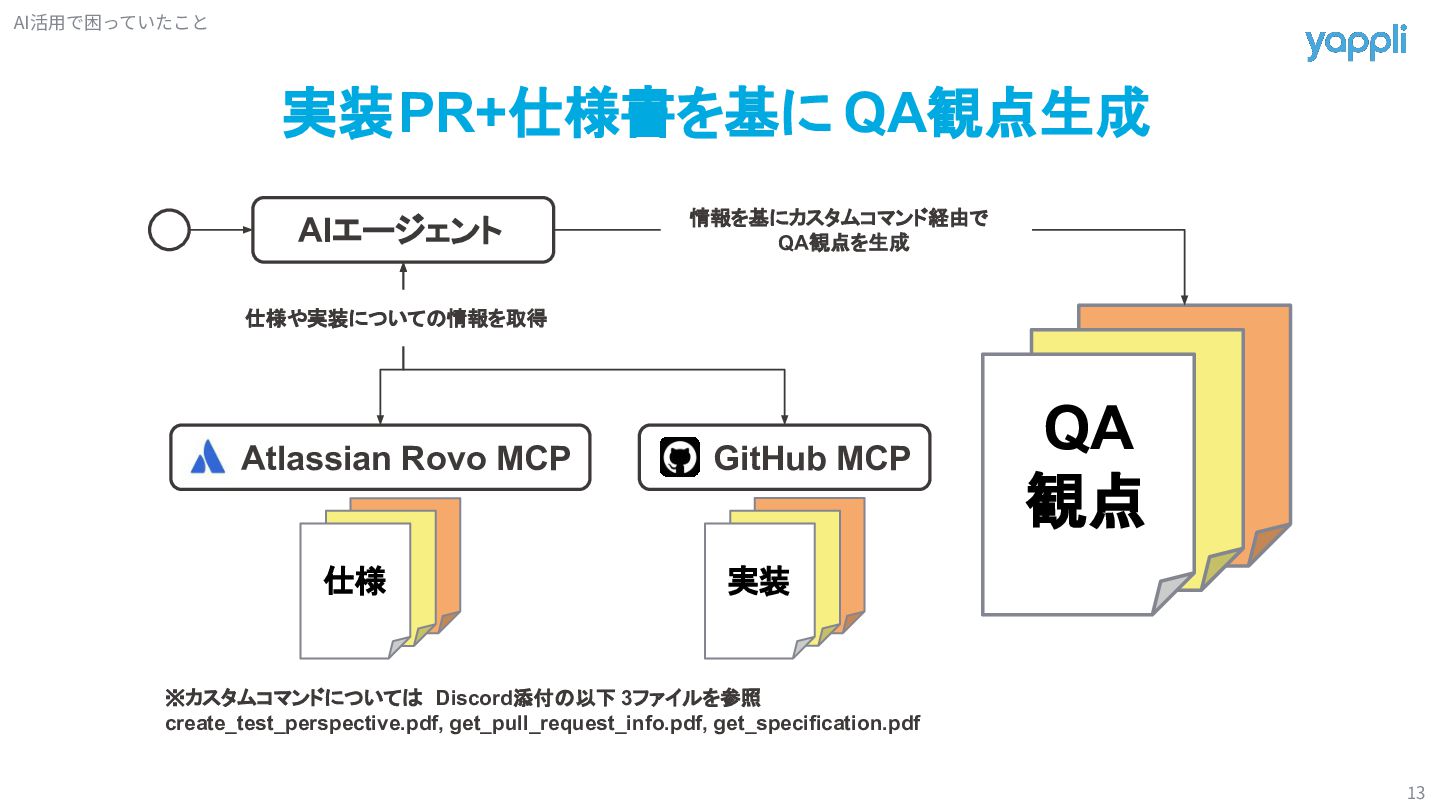 5. 実装PR+仕様書を基に QA観点生成 13 GitHub MCP Atlassian Rovo MCP 仕様 AIエージェント