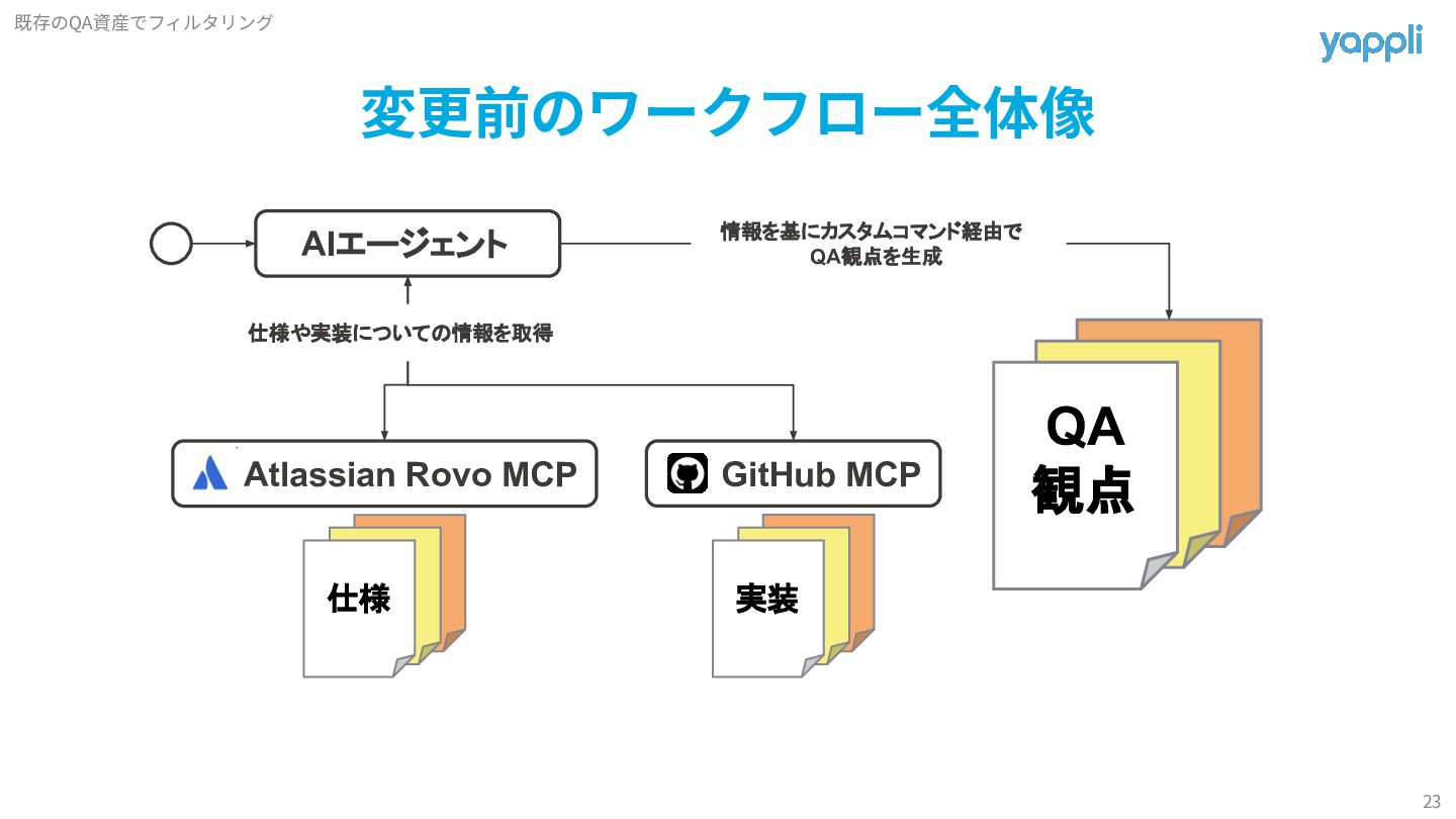 8. 変更前のワークフロー全体像 23 GitHub MCP Atlassian Rovo MCP 仕様 AIエージェント QA