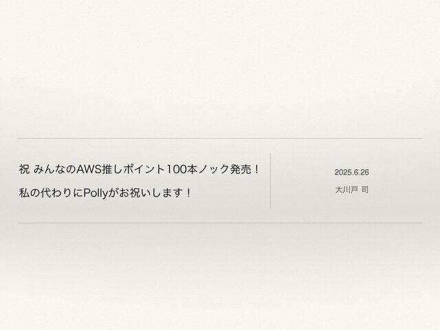 ॕ ΈΜͳͷ"84ਪ͠ϙΠϯτຊϊοΫൃചʂ ࢲͷΘΓʹ1PMMZ͕͓ॕ͍͠·͢ʂ 2025.6.26 େށ ࢘