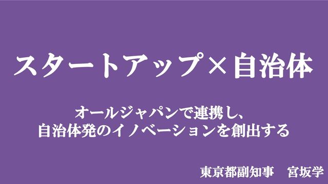 オールジャパンで連携し、 自治体発のイノベーションを創出する スタートアップ×自治体 東京都副知事 宮坂学