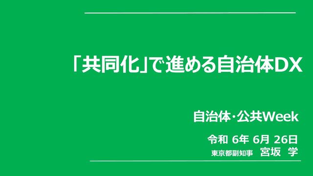 自治体・公共Week 令和 6年 6月 26日 東京都副知事 宮坂 学 「共同化」で進める自治体DX