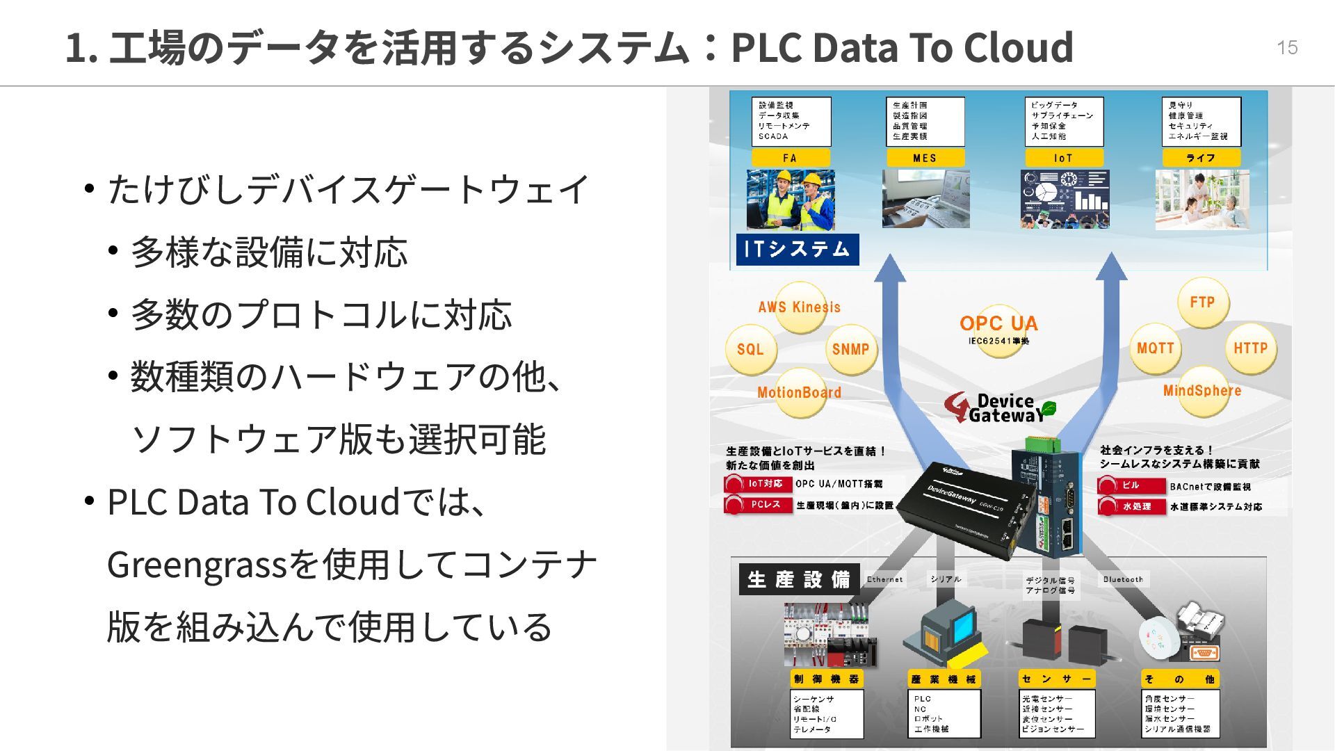 12. 1. 工場のデータを活用するシステム:PLC Data To Cloud 15  たけ びしデ バイスゲートウェイ