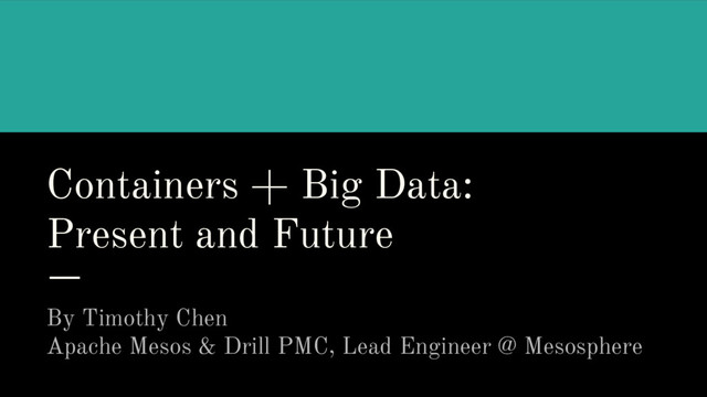 Containers + Big Data: Present and Future By Timothy Chen