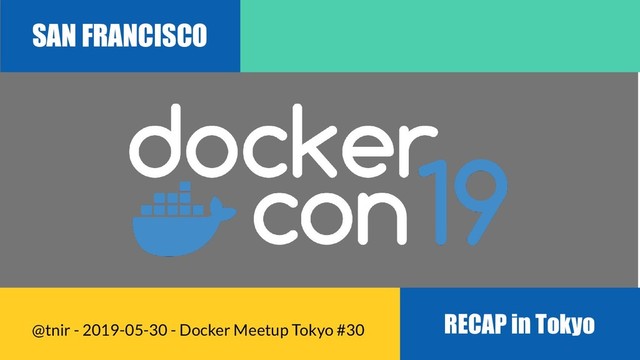 etc. • Day 1+2: Keynotes & sessions • Day 3: Open Source Summit ◦ Security, Compose +Docker App, buildkit, Service Mesh, CNAB, SwarmKit, containerd, Kubernetes, Serverless • Products from Docker Inc. • Community ◦ Captains, Community Leaders ◦ Docker Pals (一般参加者の交流)