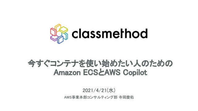 クラスメソッド株式会社が主催するAWSのオンライン勉強会 AKIBA.AWS #2 ONLINE で発表された「今すぐコンテナを使い始めたい人のためのAmazon ECSとAWS Copilot」の登壇資料です。
