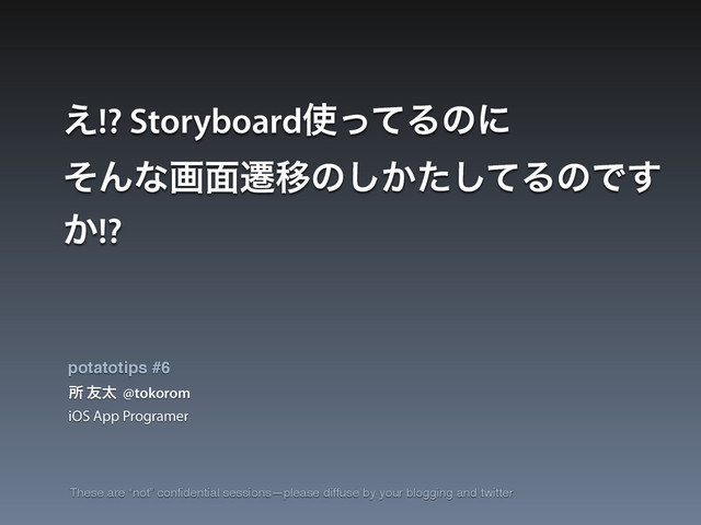 ͑!? StoryboardͬͯΔͷʹ ͦΜͳը໘ભҠͷ͔ͨͯ͠͠ΔͷͰ͢ ͔!? ॴ ༑ଠ @tokorom iOS App Programer