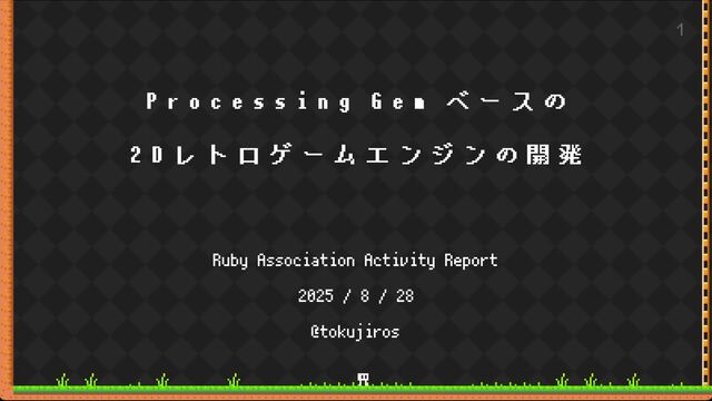 2024年度の Ruby アソシエーション開発助成金の成果発表会である「Ruby Association Activity Report」で発表した資料です。 採択いただいて開発した、2D レトロゲームエンジン Reight (R8) を紹介しています。