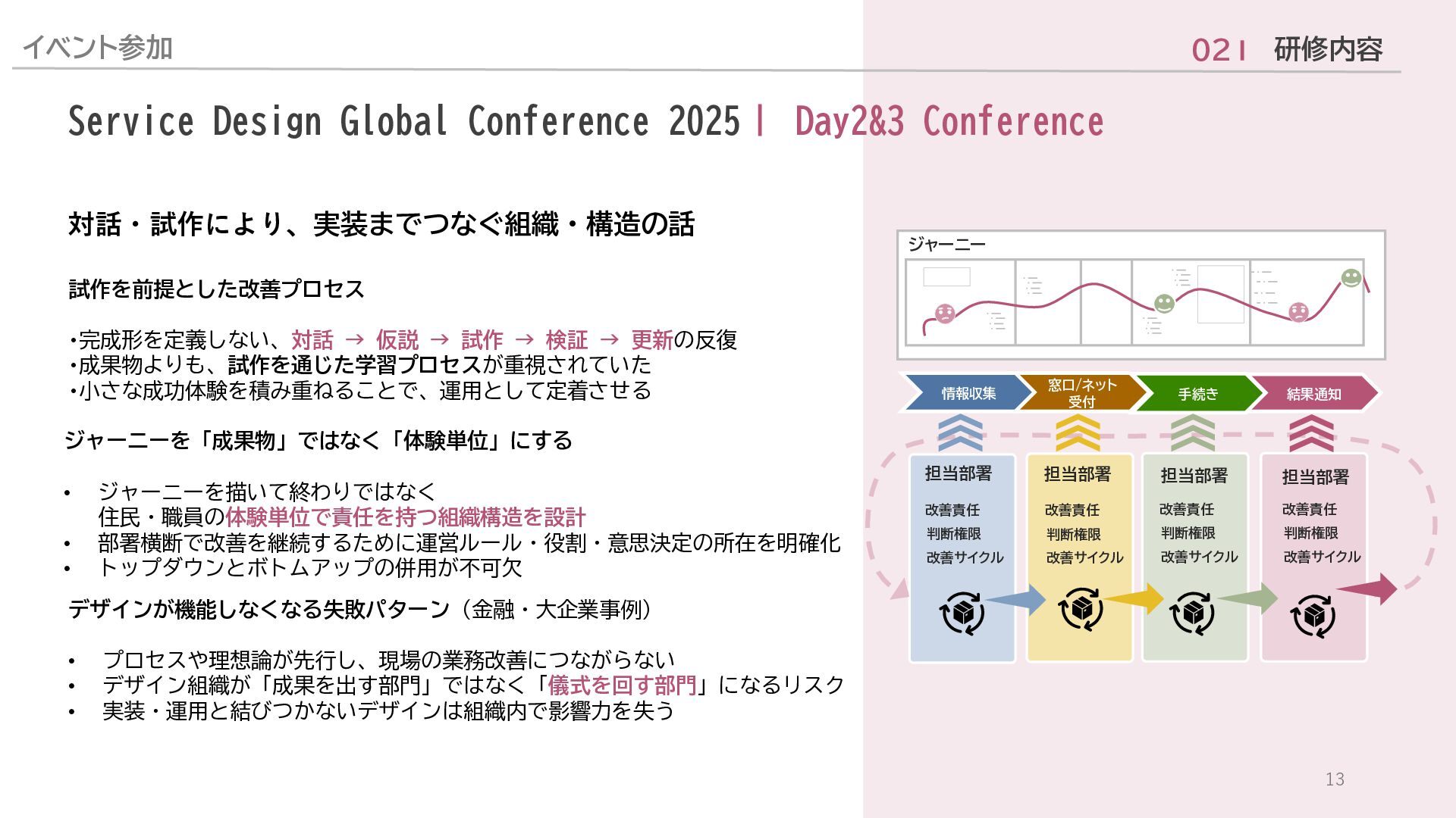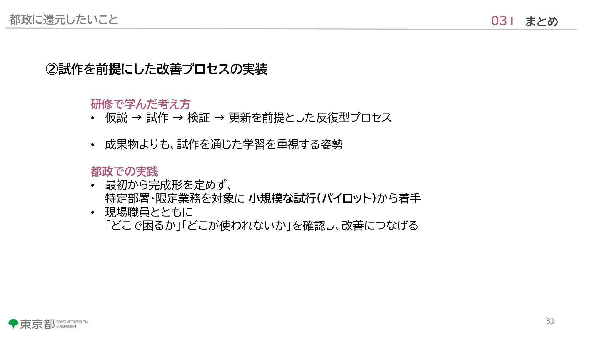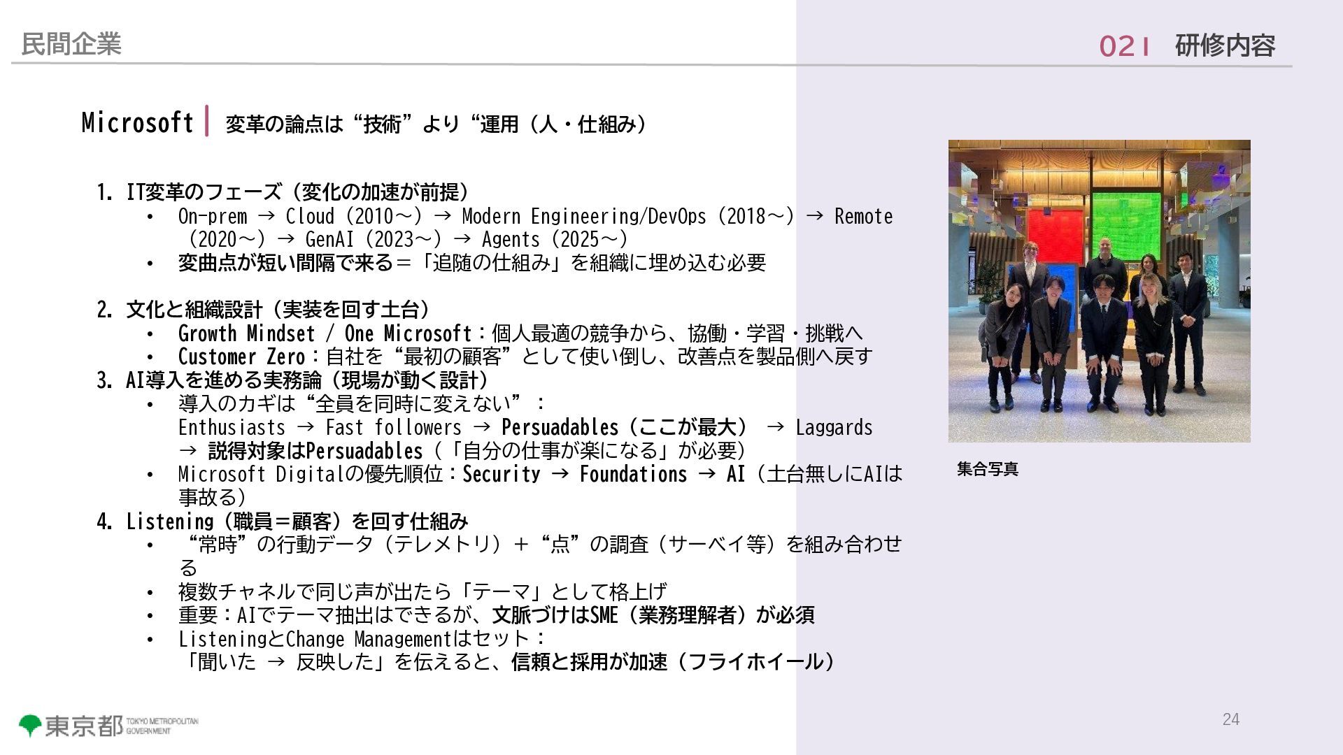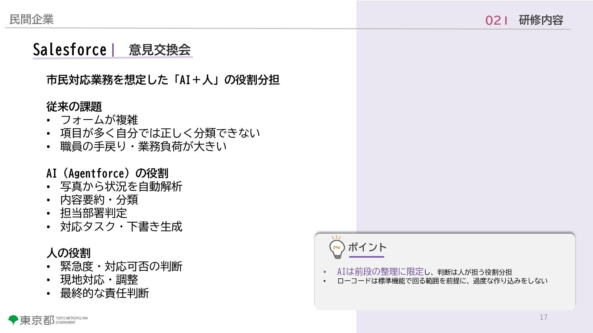 公共交通機関:バス、路面電車(アプリ、 プリペイドカード、クレジットカード払 い) • ダラス市役所の様子 ワークスペースは個別 ブースが多く、しきり に区切られた環境で仕 事をしていたまた、住 民向け受付は7つほどで 職員はそこで対応作業 を行っていた Appendix アメリカのアクセシブルで ないエレベーターボタン押 すボタンの左横に同じ大き さの•のラべルがあり、そ こに点字も記載ADA(障碍 者法)で「後から点字を追 加する」ことが義務化され たためこんな感じに サンフランシスコ 1. 町全体の印象 • 自動運転タクシーWaymoが街中によく 走っている人の検知、車線の色の把握、 走行中、駐車中の車の検知ができてい たしかし、配車を手配する際、Pick Up 禁止の道でPick Upされた • 公共交通機関:MUNI, BART(アプリ、 プリペイドカード、クレジットカード 払い) • 車いす利用者が多い印象 ニューヨーク 1. 町全体の印象 1. 観光客多め 2. 地下鉄利用者が多い通勤も地下鉄をよく 使っている 3. 公共交通機関:地下鉄(クレジットカー ド払い) 2. Appendix NewYork街中視察 レンタルされたWifi NewYorkFreeWifi デジタルサイネージ 991通報 311通報 無料高速Wi-Fi Google Mapの利用 運行状況のリアルタイム速報 30