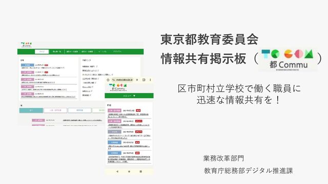 東京都教育委員会からのお知らせが、職員本人に直接届けられるようになり、 提供される情報の数・種類が増えるとともに、即時性が向上、情報格差が改善 (都教委からの連絡が掲示板に掲載されるまでにかかる時間:約1時間) 職員の声(ユーザーテスト時等) • 研修情報や各種試験情報があるととてもあ りがたい • 都職員の実感がなかったので、特に若手職 員にとってはかなり有益な掲示板になる • 職場情報等が見られると今後のキャリアを 考える一助になる 月 種別 2月 3月 4月 5月 PC 29 1051 506 861 スマートフォン 12 441 246 325 合計 41 1492 752 1186