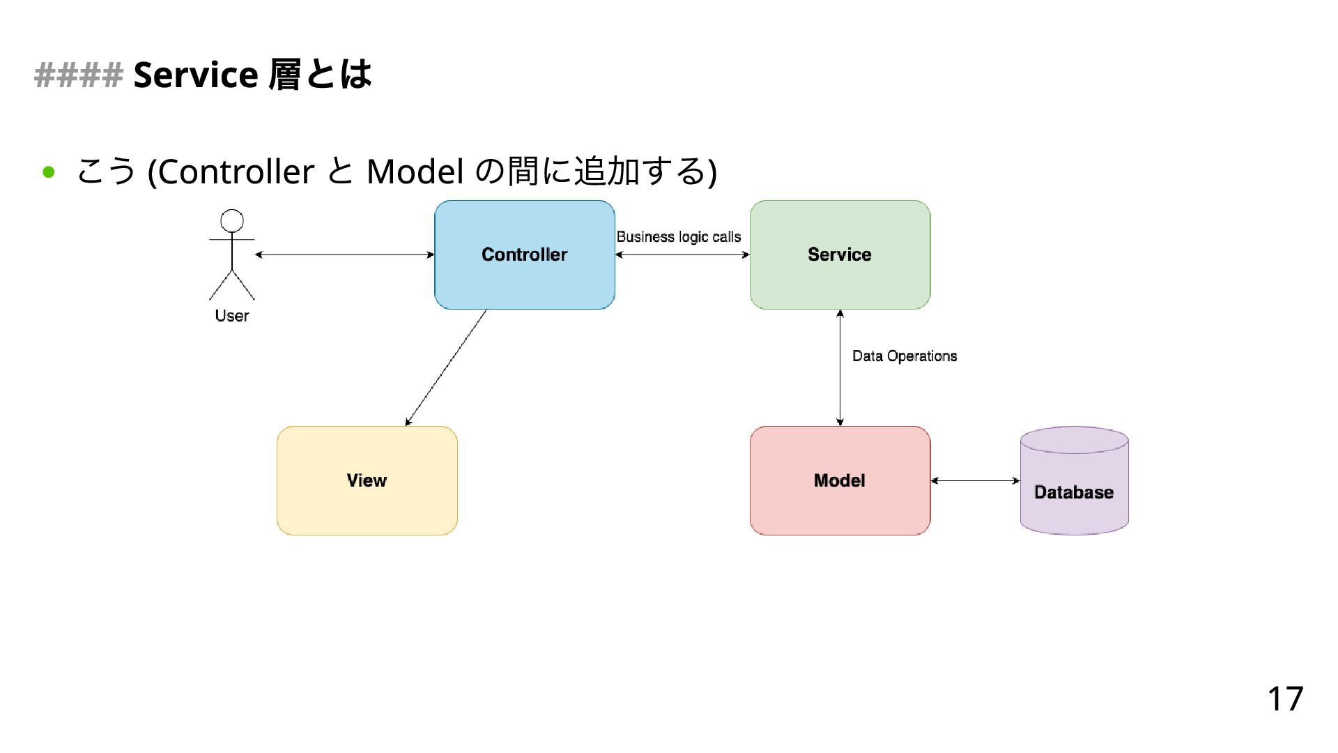 こう (Controller と Model の間に追加する) #### Service 層とは 17
