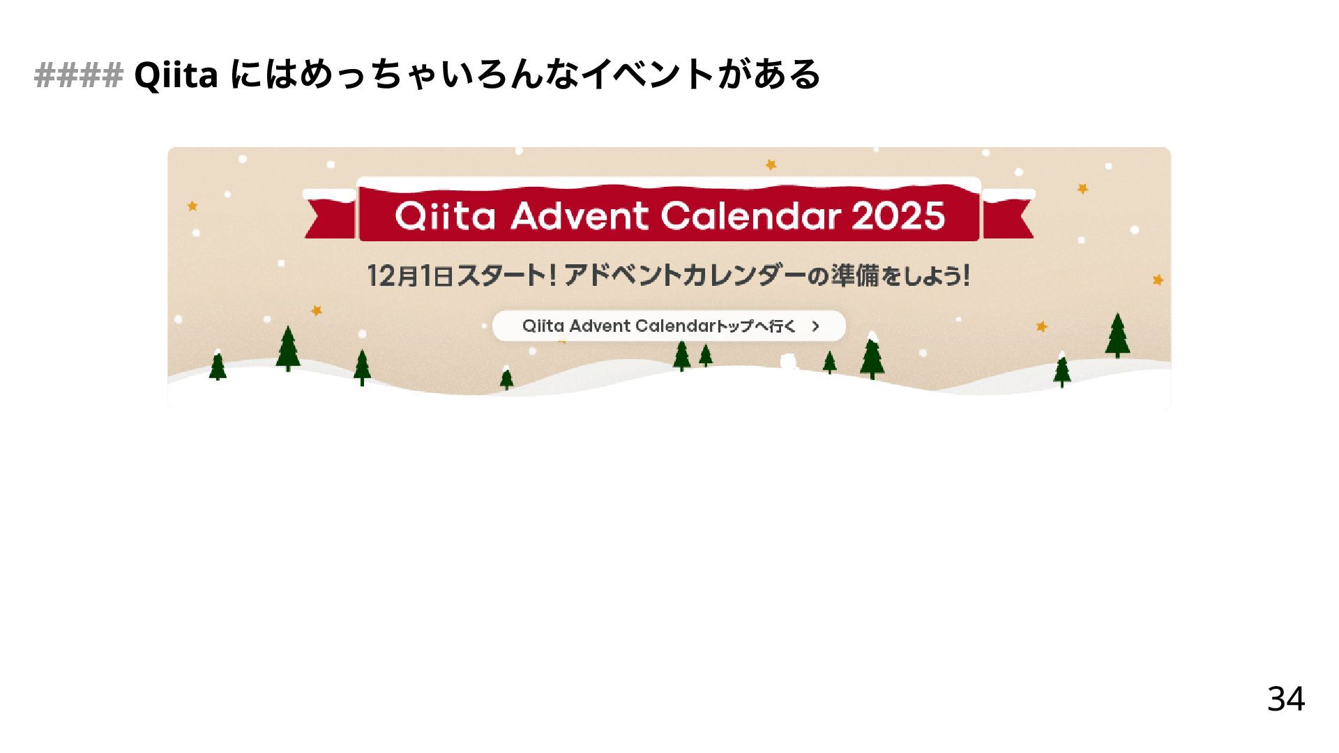 #### Qiita にはめっちゃいろんなイベントがある 34