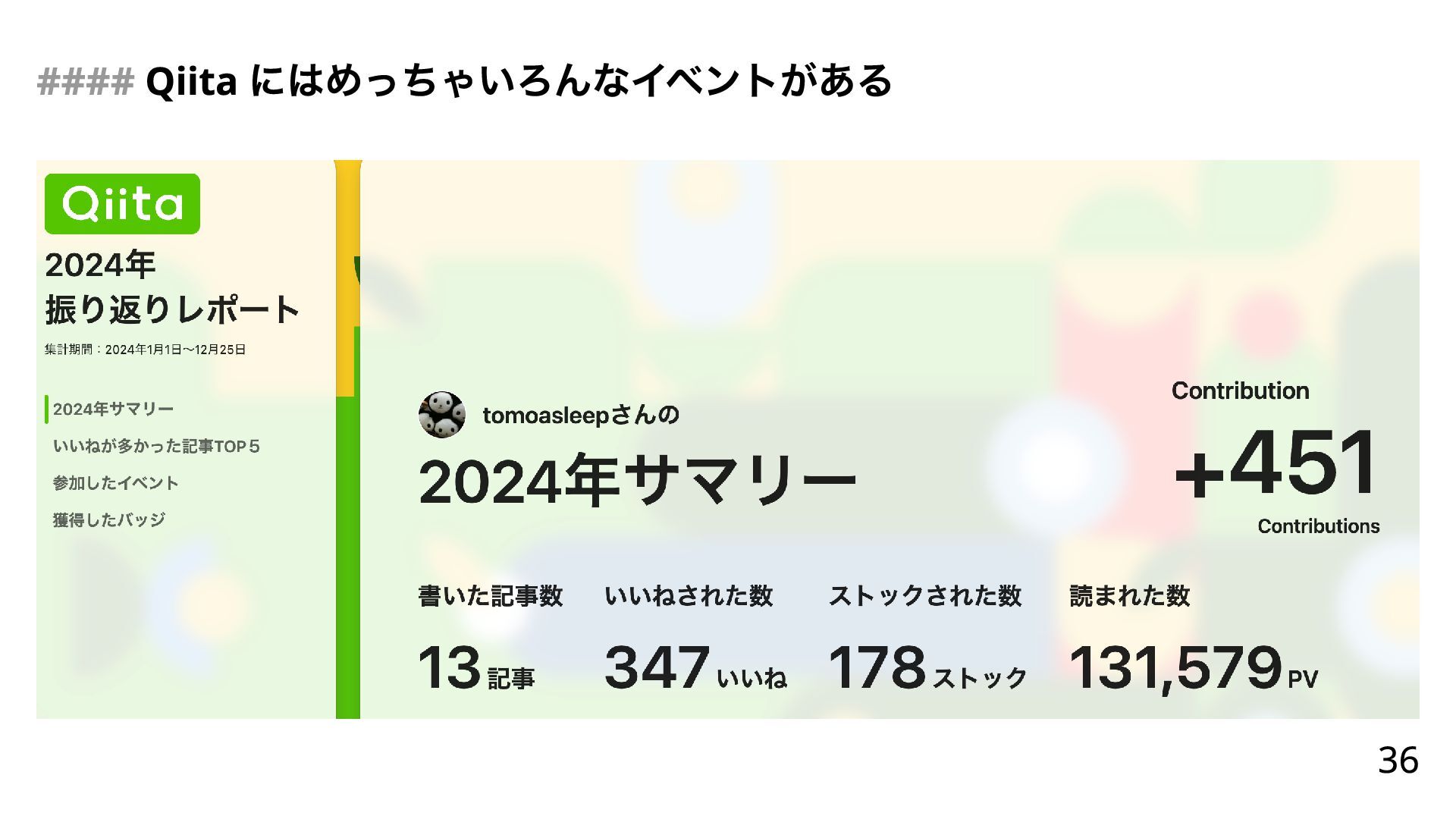 #### Qiita にはめっちゃいろんなイベントがある 36