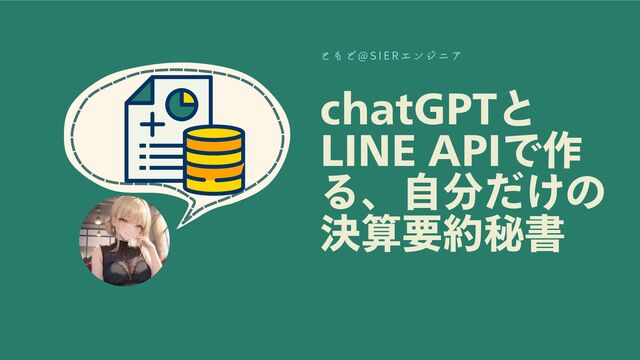 「chatGPTとLINE APIで作る、自分だけの決算要約秘書」というタイトルのプレゼンテーションです。