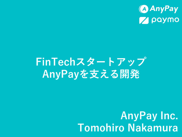 FinTechスタートアップ AnyPayを⽀える開発 AnyPay Inc. Tomohiro Nakamura
