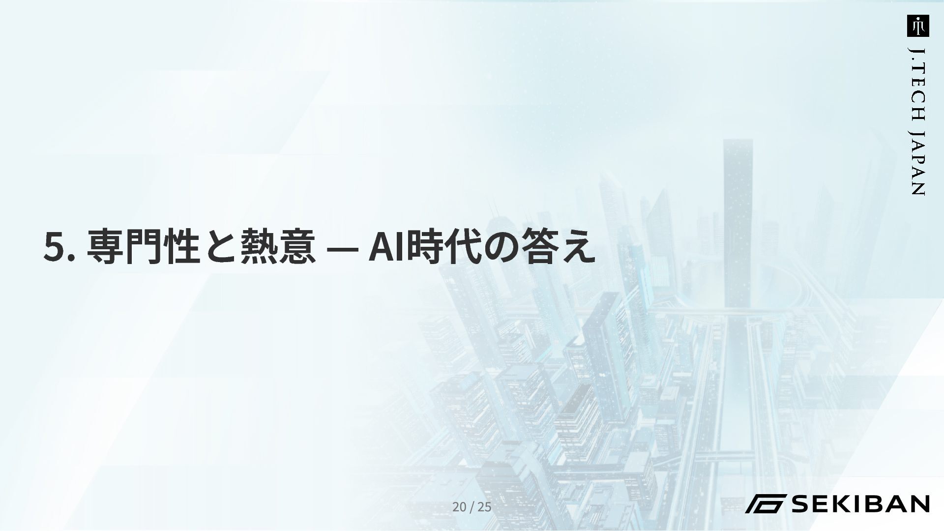 5. 専門性と熱意 — AIが万能の道具だからこそ「何を作るか知っている人」が勝つ。浅いスキルはAIがカバーし、深いスキルに人間の価値が残る