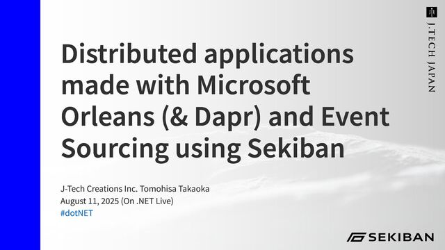 Distributed application made with Microsoft Orleans (&Dapr) and Event Sourcing. We build event sourcing and CQRS Framework with C#, it's called Sekiban. It is OSS, and easily develop with LLM agent with VS Code. I would like to introduce how this would improve productivity.