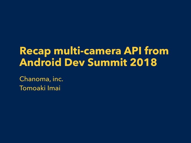 Recap multi-camera API from Android Dev Summit 2018 Chanoma, inc.