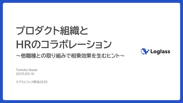 1 プロダクト組織と HRのコラボレーション 〜他職種との取り組みで相乗効果を生むヒント〜 Tomoka Nagai 2025.05.10 スクラムフェス新潟2025