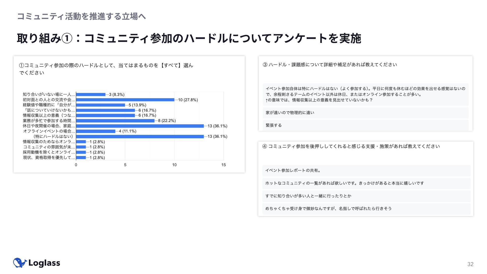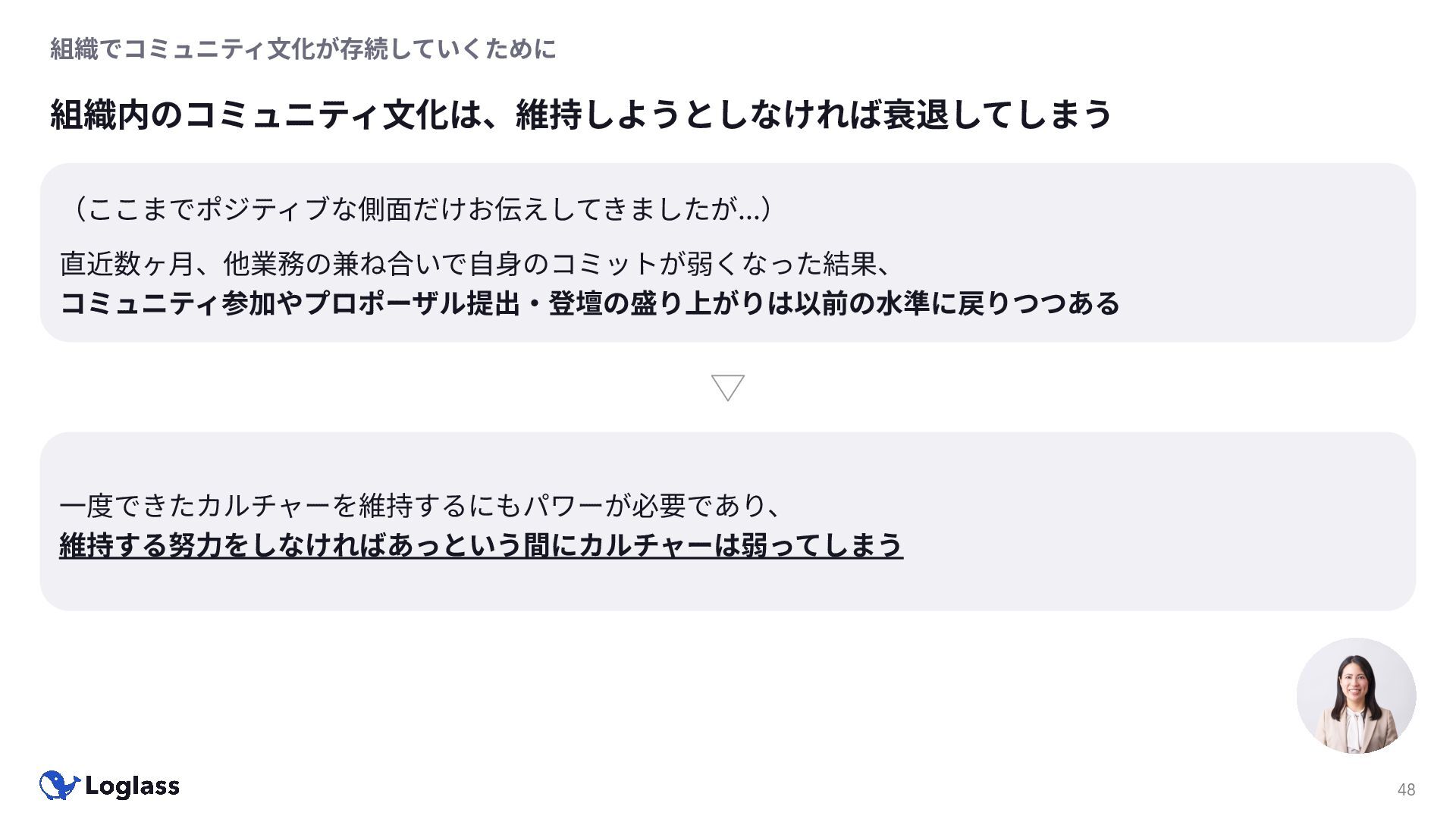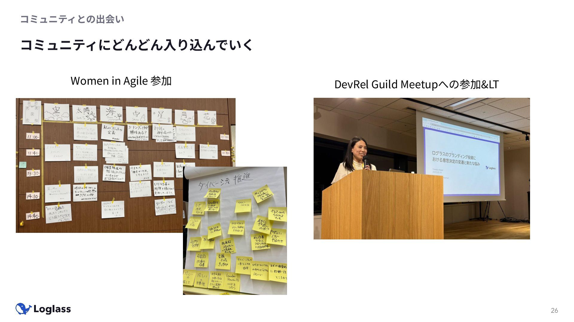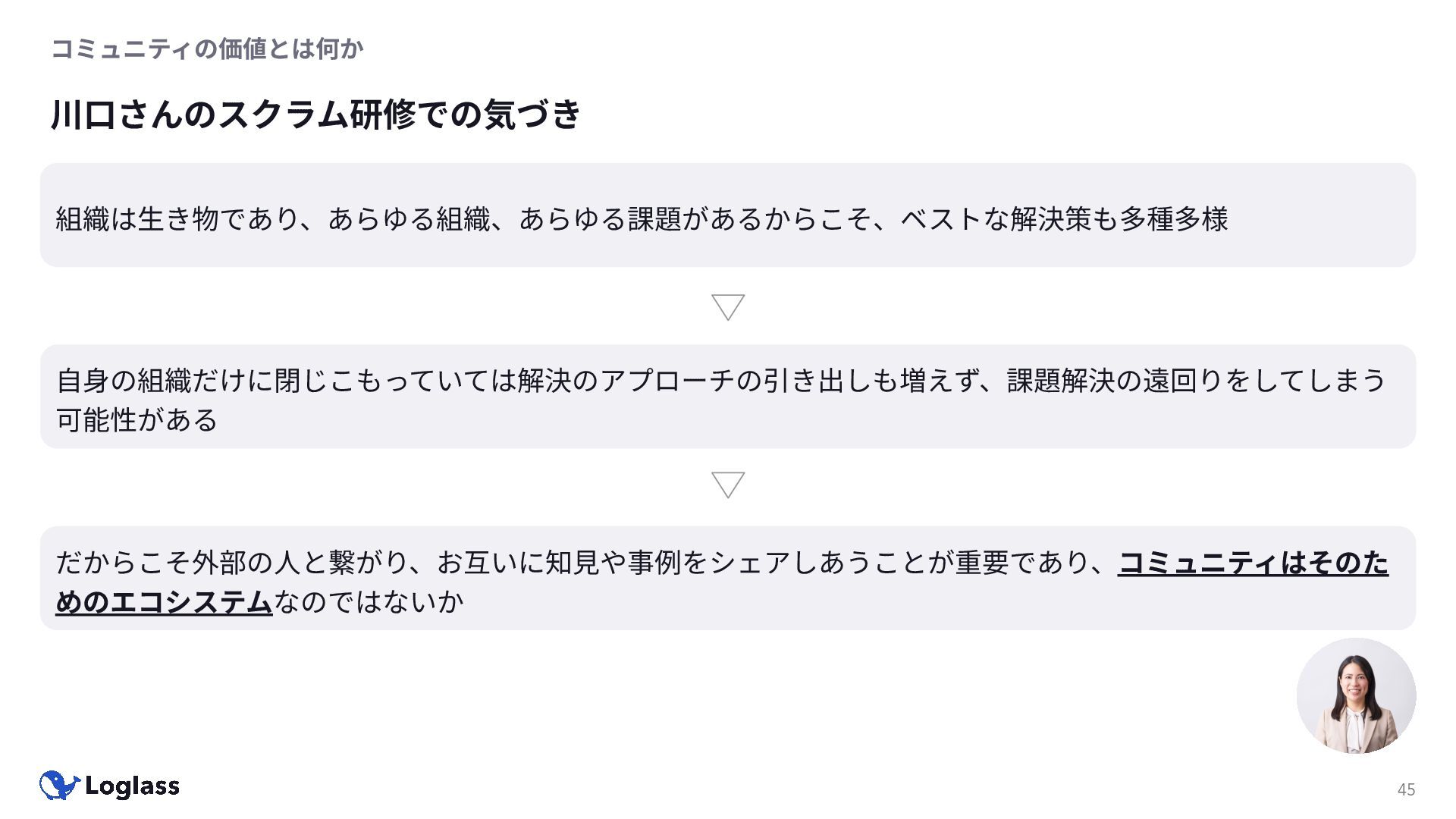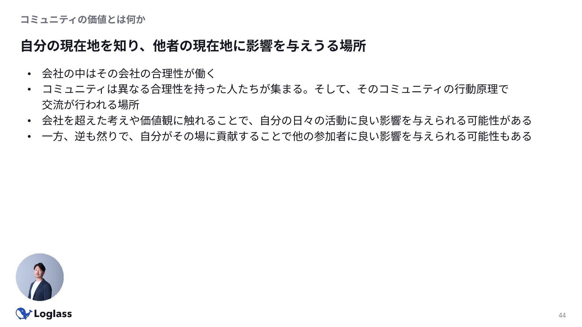 ‐ 短期ではなく⻑期で • 採⽤ブランディングだけでなく、コミュニティに出ていくこと⾃体に⻑期的な学びの価値がある ‐ ⼩さくても⻑く継続させる ‐ スポンサーができる = 会社の中でそのコミュニティへの投資を説明できる⼈がいる ‐ 活動を継続し、ブランディングができれば、新たに参加する参加者のハードルも下げることができる • こうした活動に説得⼒を持たせるのは、⾃⾝がそのコミュニティで⻑く活動していればそのほうがやりや すい ‐ 会社に貢献しようとした時に⼀朝⼀⼣でコミュニティとの繋がりを作ることは難しい ‐ 個⼈のためでもあり、会社のためにも、薄くても⻑く活動を継続することは価値がある 会社の中にコミュニティ⽂化を持ち込む 会社を巻き込む 20