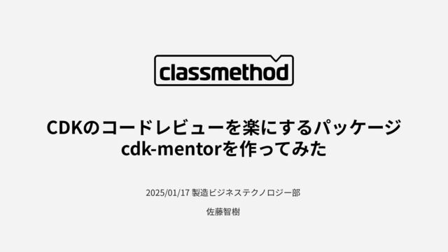 CDKのコードレビューを楽にするパッケージ cdk-mentorを作ってみた 2025/01/17 製造ビジネステクノロジー部 佐藤智樹