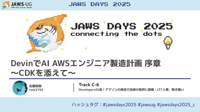 DevinでAI AWSエンジニア製造計画 序章 〜CDKを添えて〜 ハッシュタグ:#jawsdays2025 #jawsug #jawsdays2025_c 佐藤智樹 tmk2154 Track