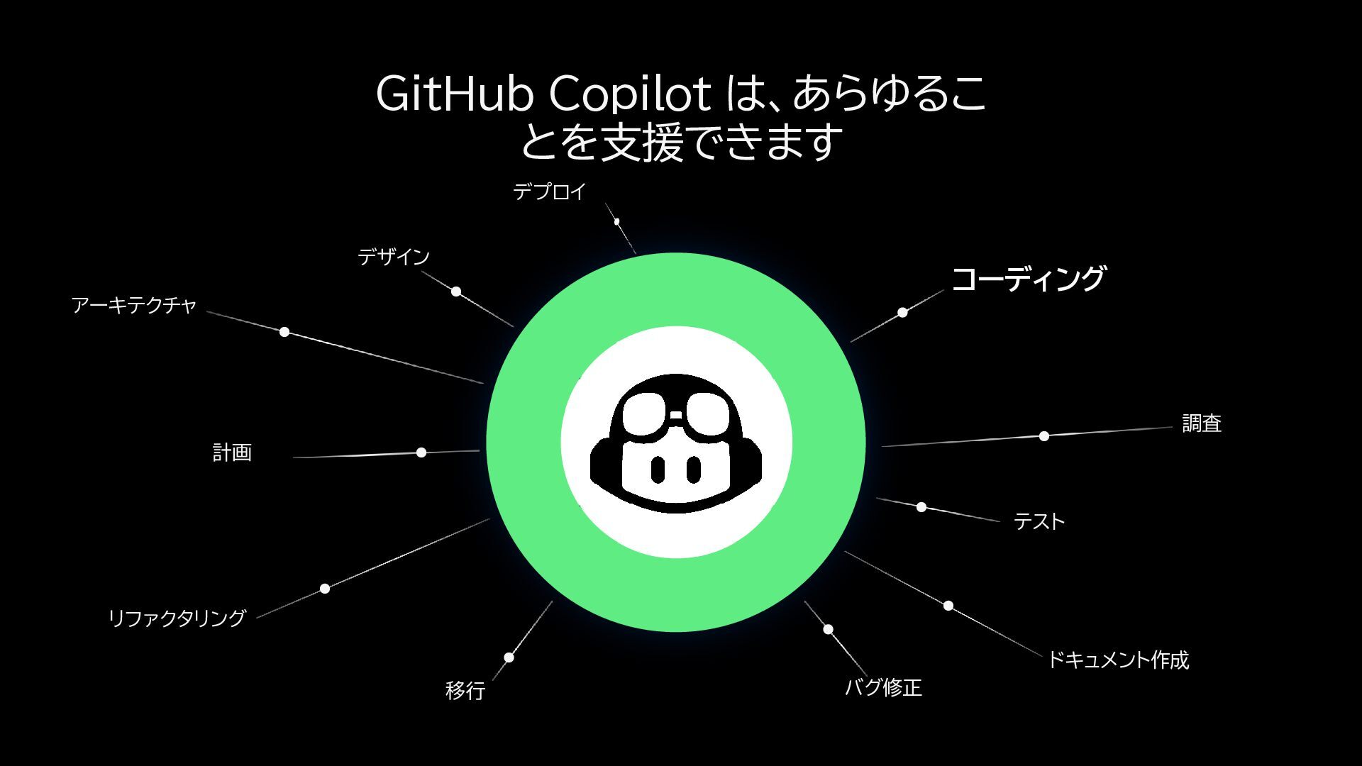 11. オンボーディング Copilot Chat を使って、新しいエン ジニア向けにコードベースを要約 する。 CI/CD コミットメッセージと PR 要約を自