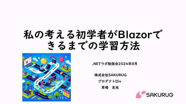 私の考える初学者がBlazorで きるまでの学習方法 株式会社SAKURUG プロダクトDiv 草場 友光 .NETラボ勉強会2024年8月
