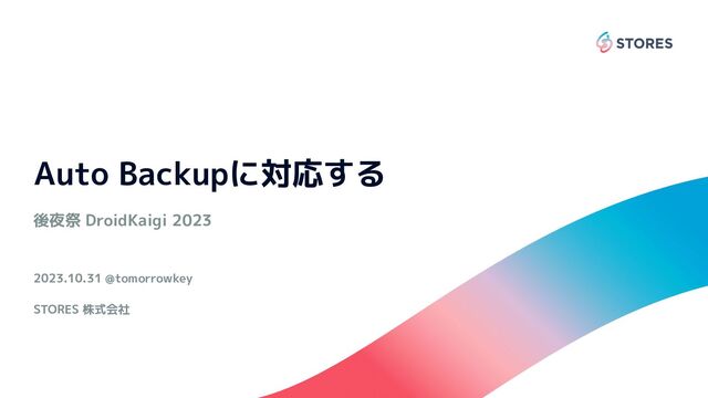 STORES 株式会社 後夜祭 DroidKaigi 2023 2023.10.31 @tomorrowkey Auto Backupに対応する