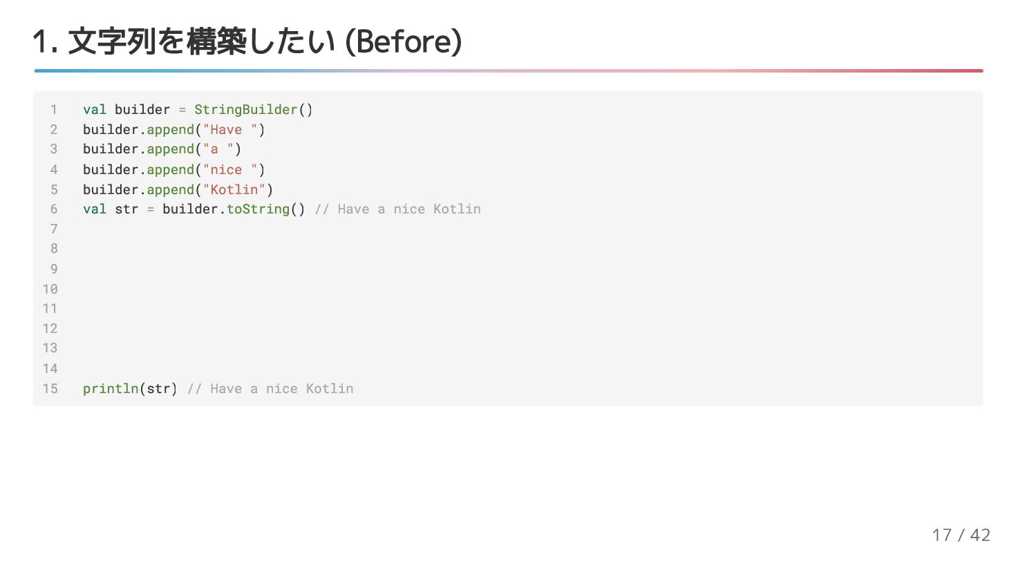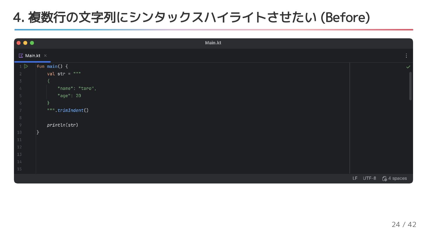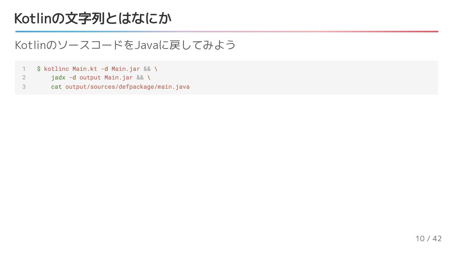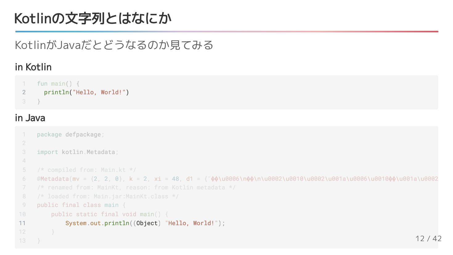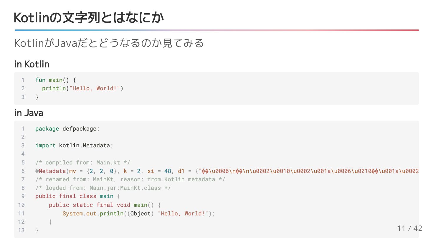 2 println("Hello, World!") 3 } 1 package defpackage; 2 3 import kotlin.Metadata; 4 5 /* compiled from: Main.kt */ 6 @Metadata(mv = {2, 2, 0}, k = 2, xi = 48, d1 = {"��\u0006\n��\n\u0002\u0010\u0002\u001a\u0006\u0010��\u001a\u0002 7 /* renamed from: MainKt, reason: from Kotlin metadata */ 8 /* loaded from: Main.jar:MainKt.class */ 9 public final class main { 10 public static final void main() { 11 System.out.println((Object) "Hello, World!"); 12 } 13 } 11 / 42