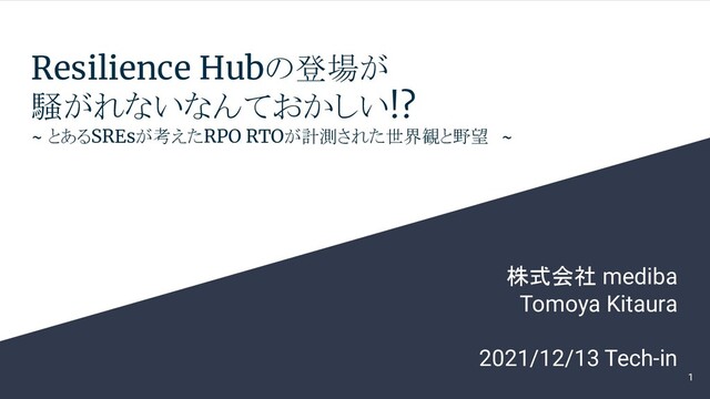 Resilience Hubの登場が 騒がれないなんておかしい!? ~ とあるSREsが考えたRPO RTOが計測された世界観と野望 ~ 株式会社 mediba Tomoya Kitaura