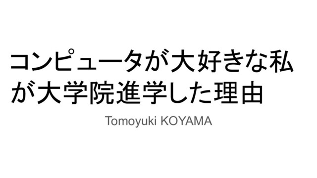 コンピュータが大好きな私 が大学院進学した理由 Tomoyuki KOYAMA