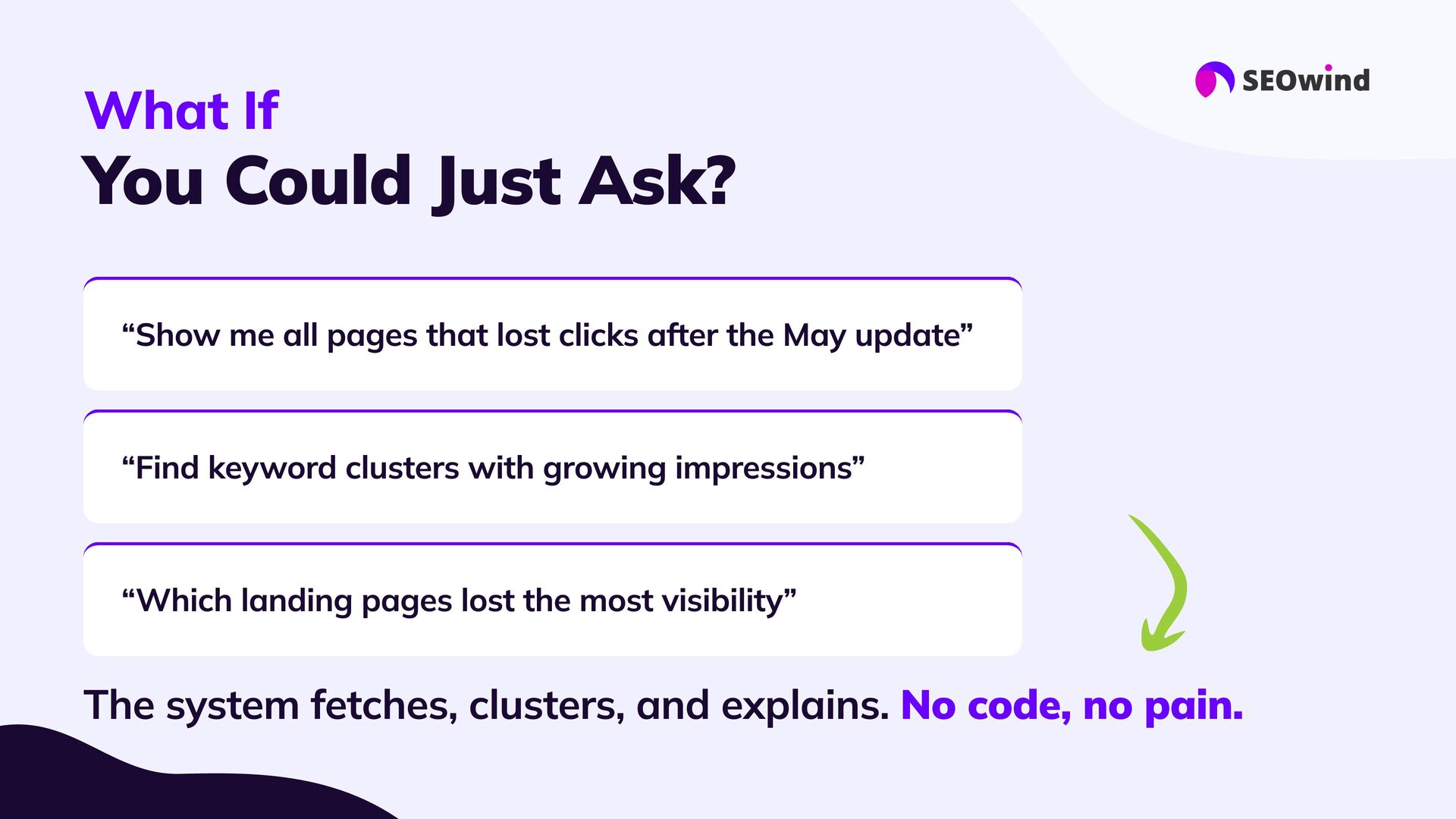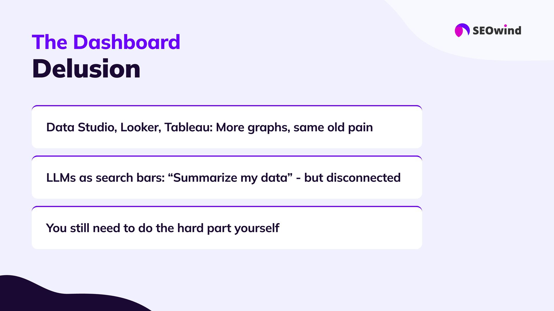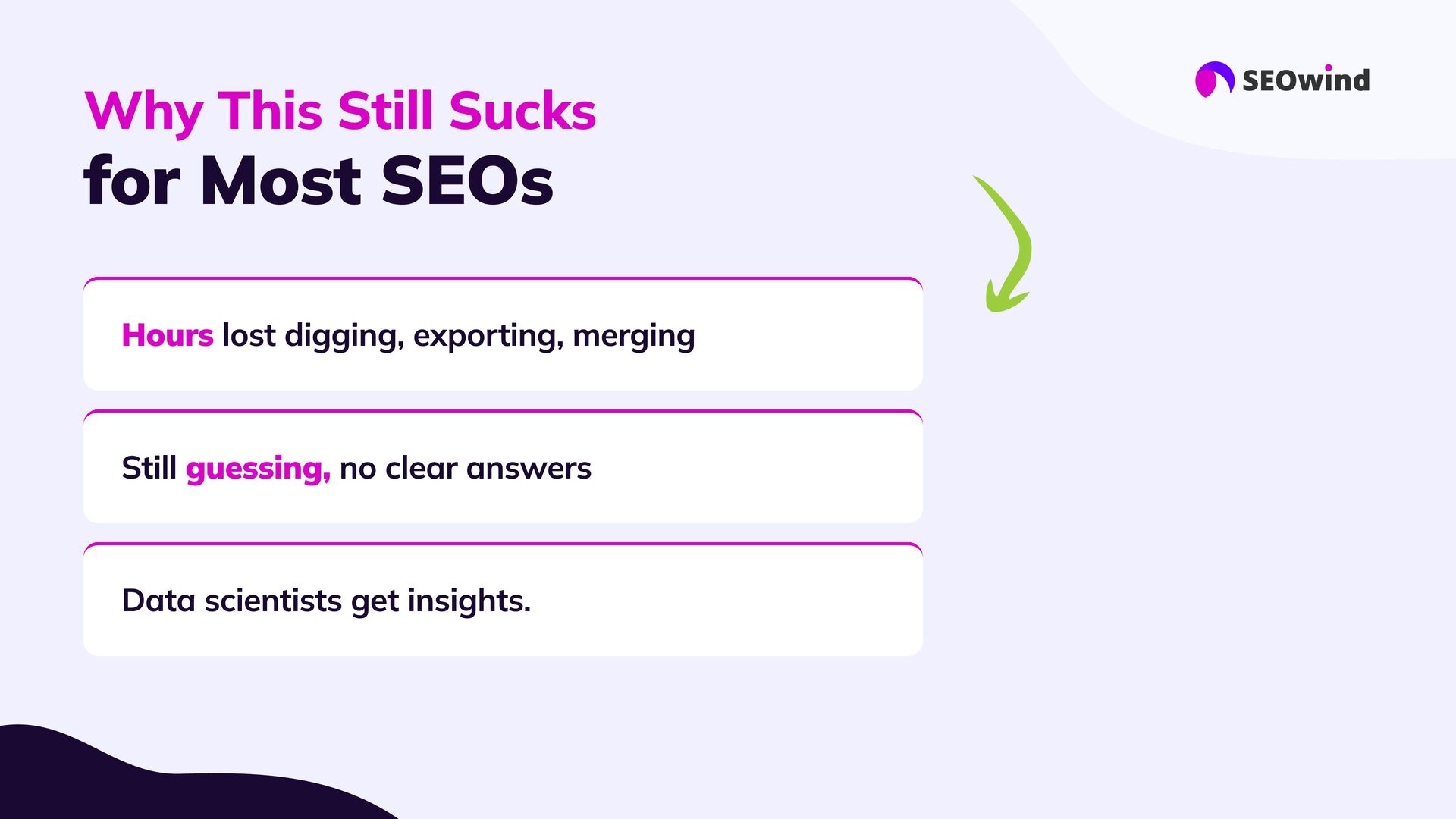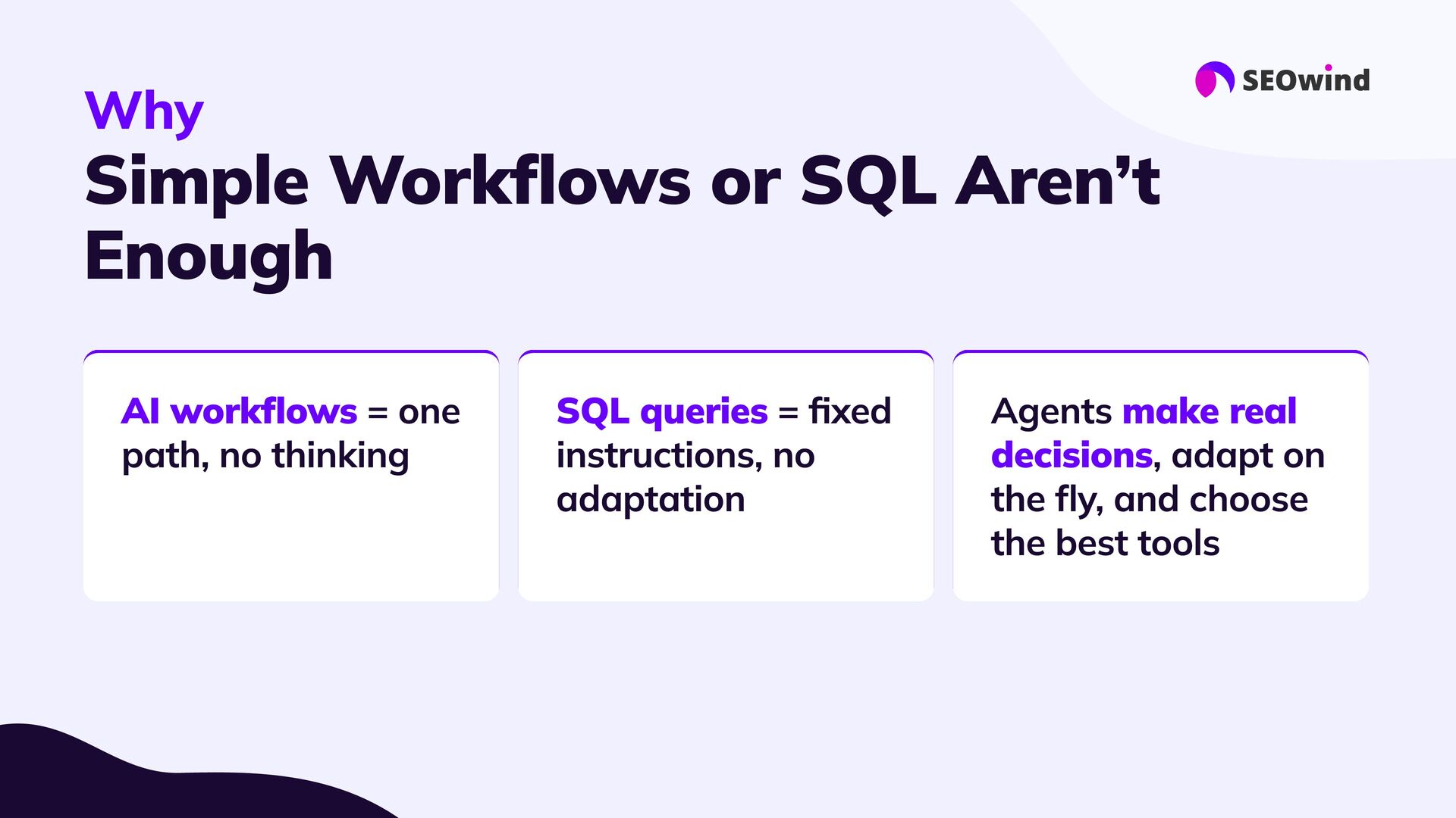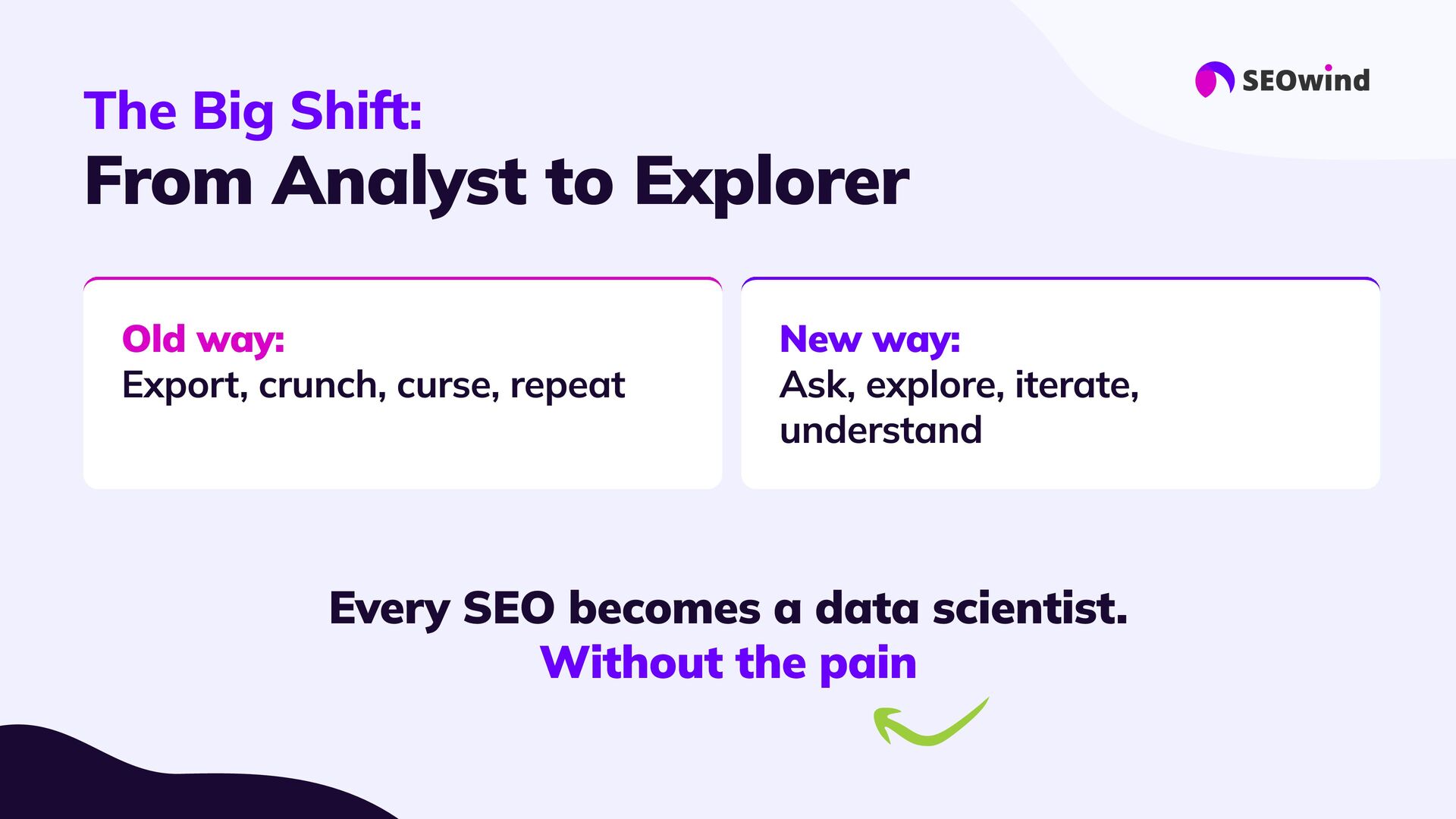 replace experts #3 Forget manual hell: #4 Great setup = great results: #5 This is the next era for SEO: AI agents let you query your data, not just export it. - they supercharge them: Your know-how still matters. Agents handle the heavy lifting, 10x faster than spreadsheets or SQL Good data, good questions, smart configuration. Better questions lead to better answers and real impact.