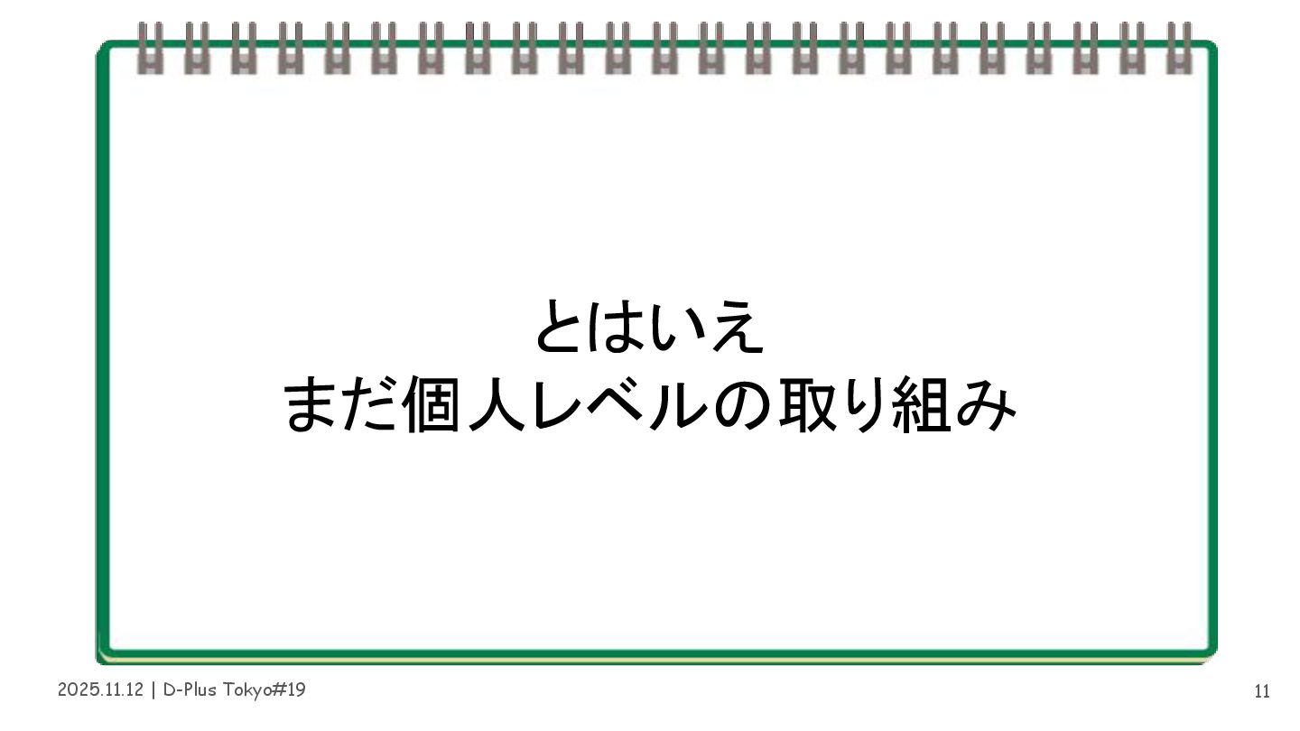 2025.11.12 | D-Plus Tokyo#19 とはいえ まだ個人レベルの取り組み 11