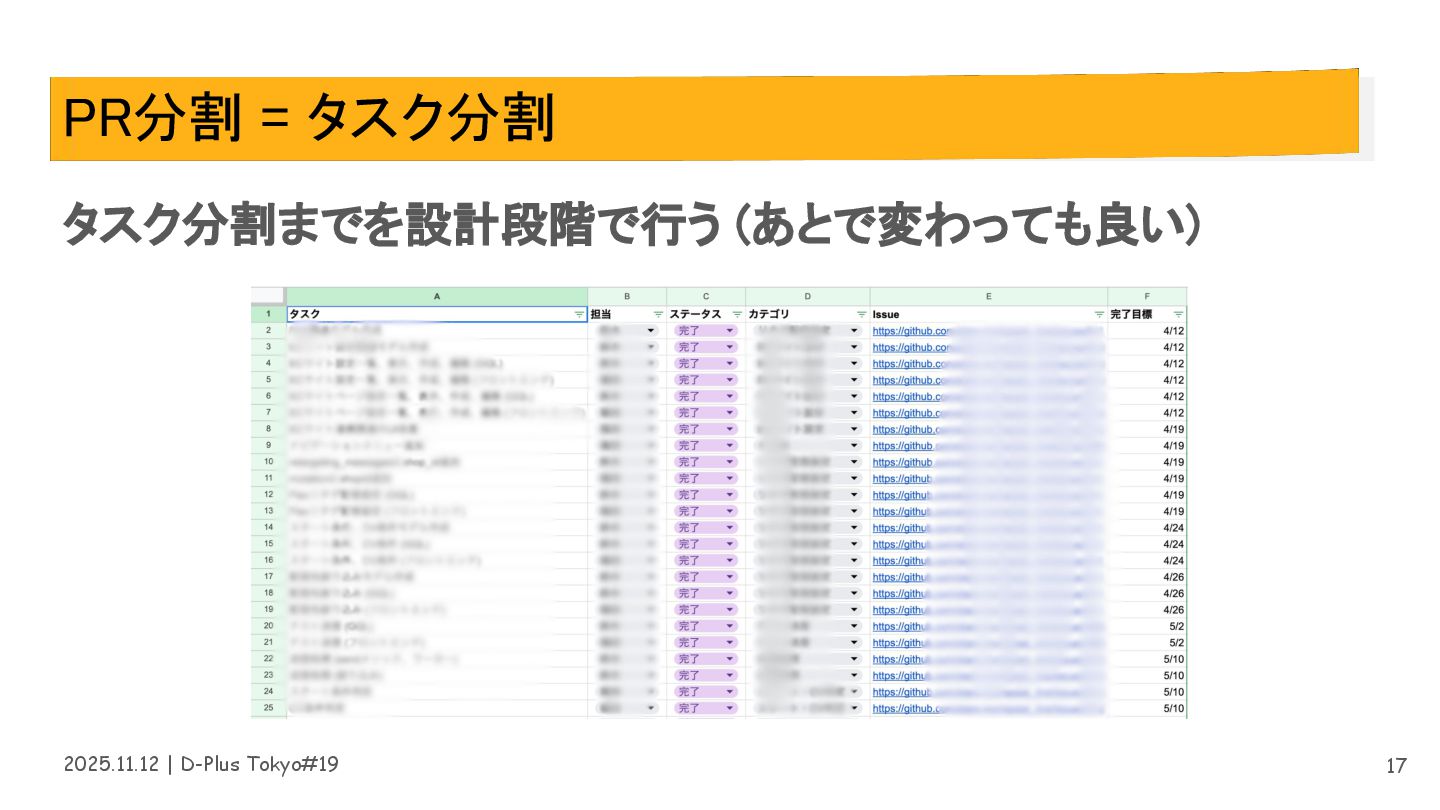 2025.11.12 | D-Plus Tokyo#19 PR分割 = タスク分割 タスク分割までを設計段階で行う (あとで変わっても良い)